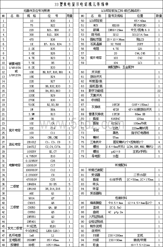 来电显示多功能电话机套件是目前世界上最先进的微电脑控制技术,集来电显示和多功能电话机一体。本产品各项指标均符合国家标准。根据不同客户需求,本套件所有元器件是从工厂拿货过来的,然后本站自行配成一套一套的,并且,原理图、清单,制作资料说明,都是本站整理配备的。所以此是电话机时很成熟的产品,欢迎有需求者制作学习。